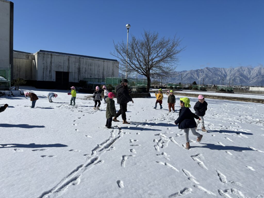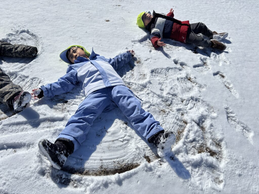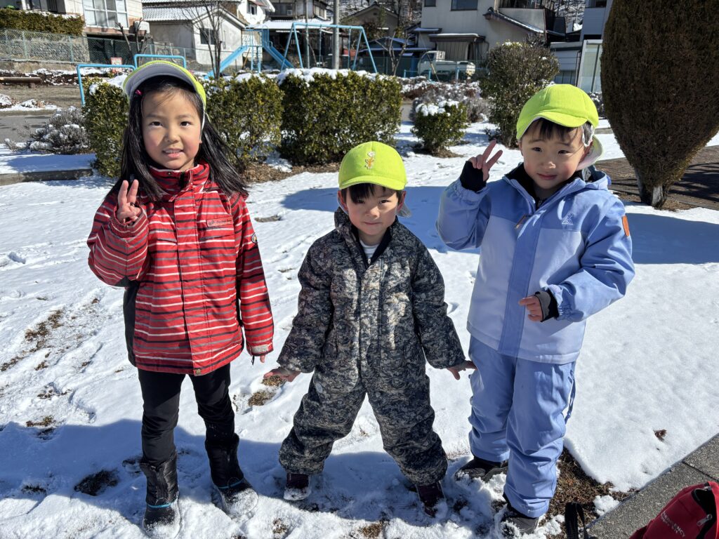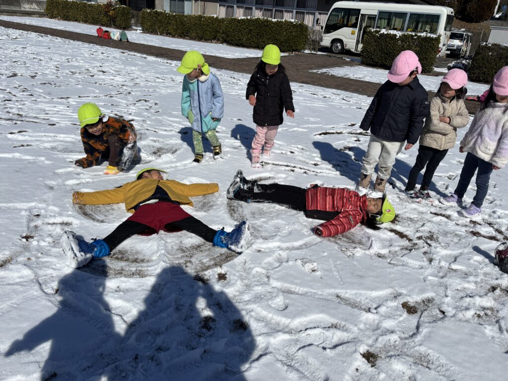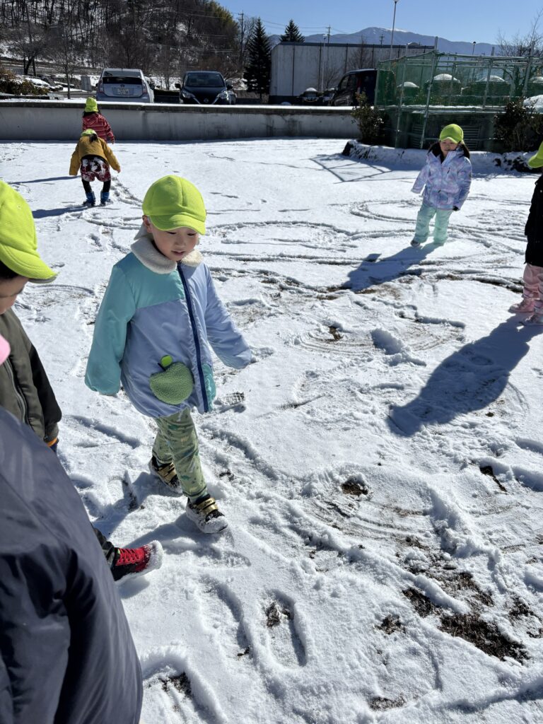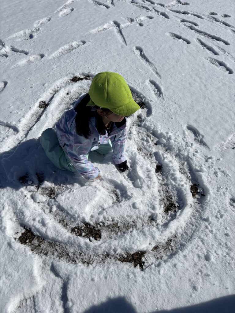 月曜日は、バスで公園に行き雪遊びをしてきました。まっさらな雪の上に足跡を付けたり、手や足をバタバタさせてSnow angel を作ったりして、雪遊びを楽しみました。積もった雪の下には、固い氷がびっしり。氷をそっと持ち上げ、大きな塊を取ろうと必死な子ども達。寒い中でも、たくさんの発見をしました。