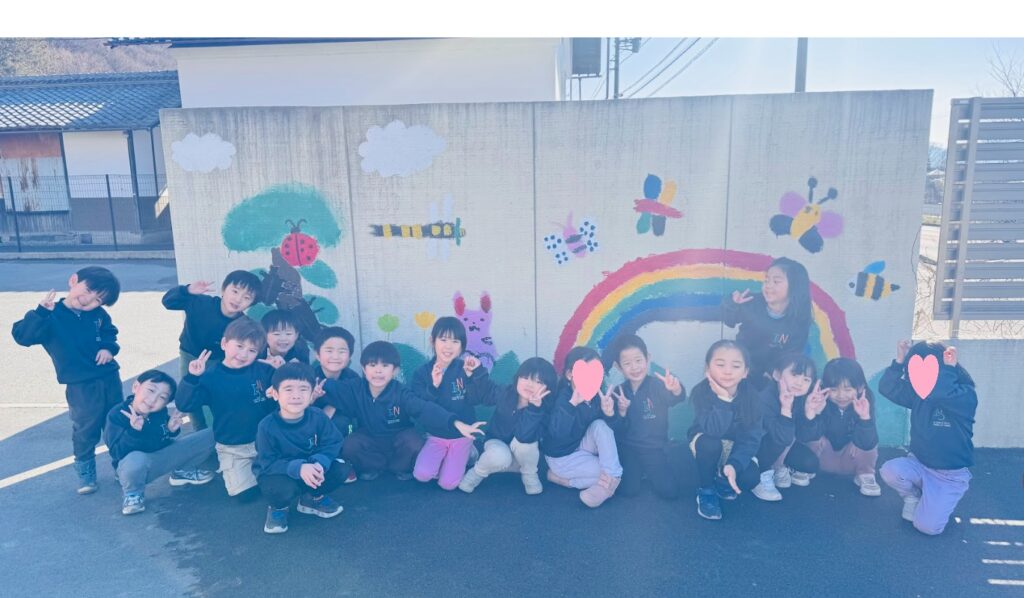 Previously, we asked the children to draw their ideas for painting the schoolyard wall. We then combined everyone’s designs to create one large collaborative artwork. The children have been enjoying painting and have been participating carefully and happily. Thanks to everyone’s hard work, we were able to complete a wonderful wall mural!