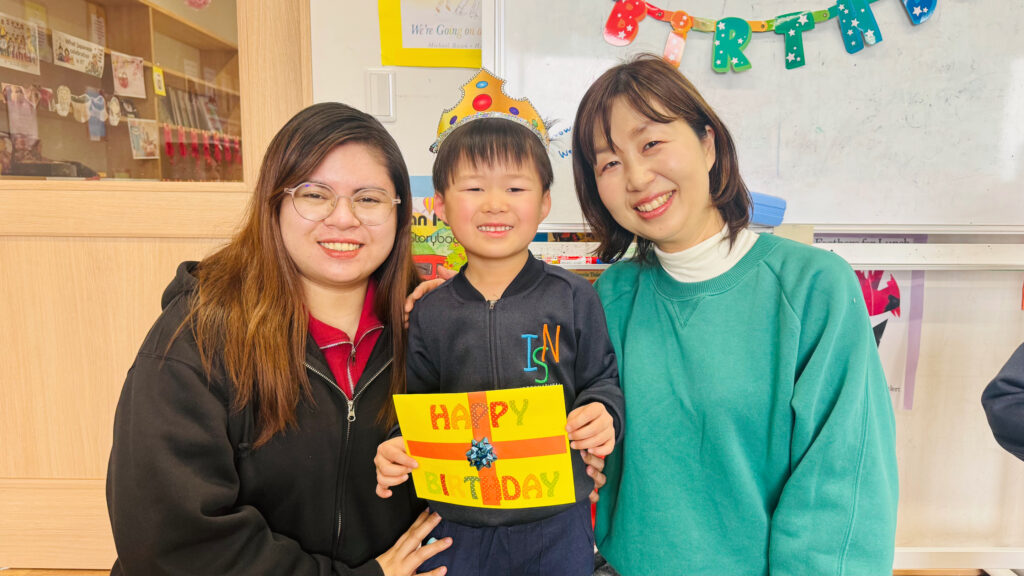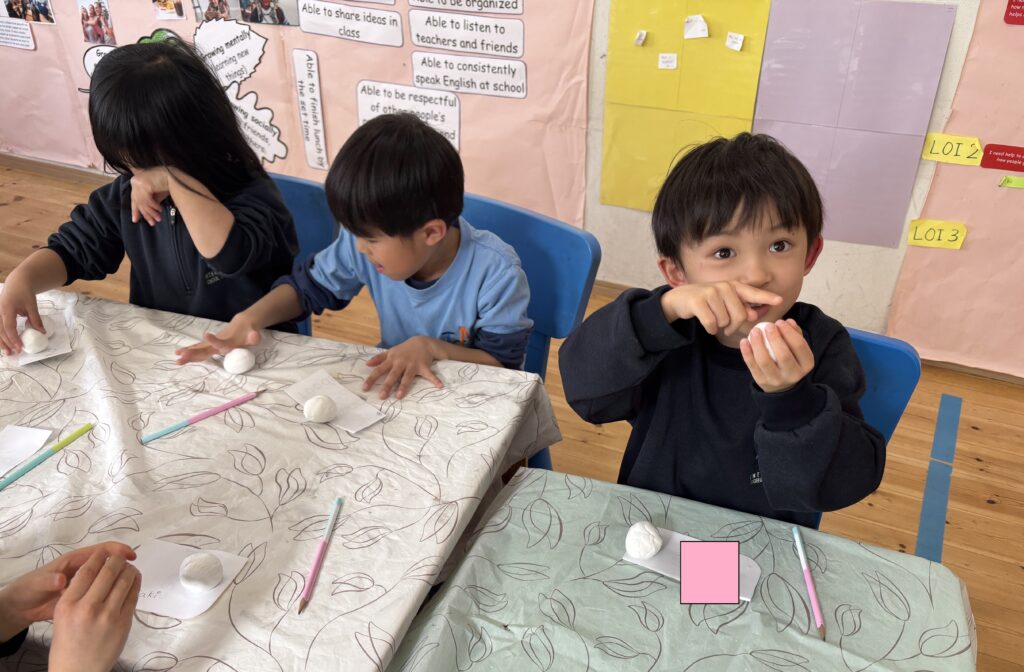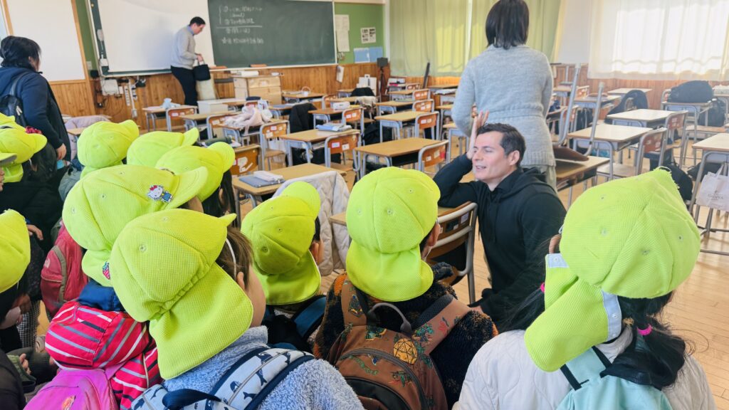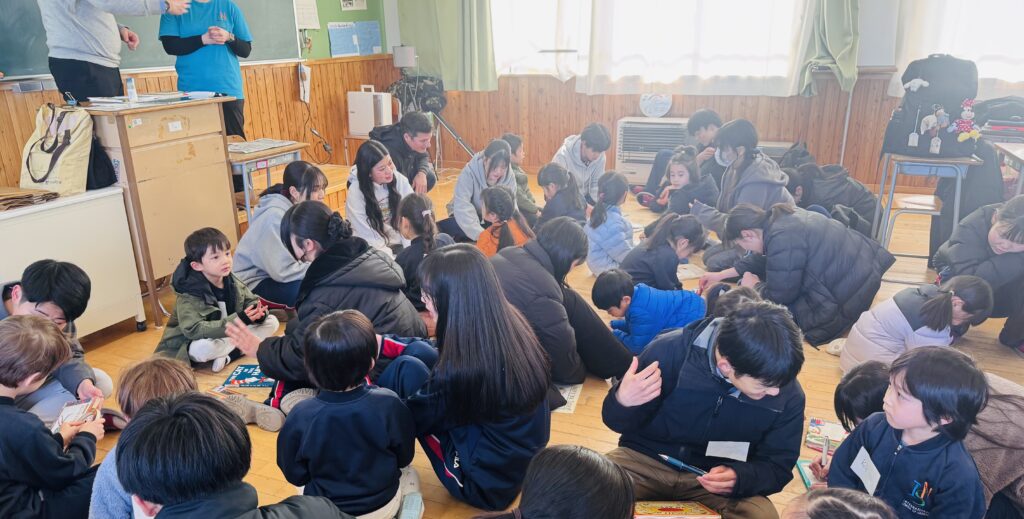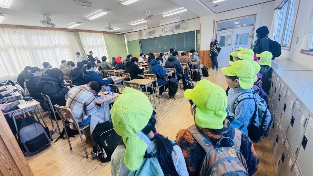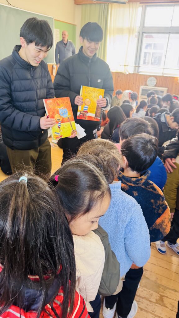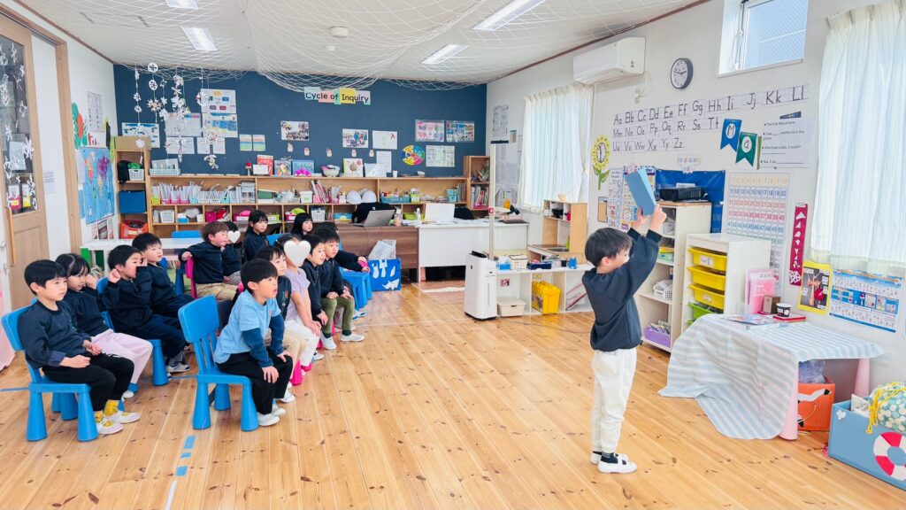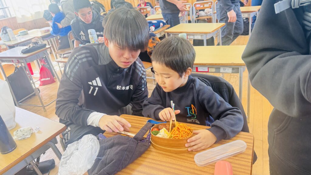 We had the opportunity to visit Agatagaoka High School for a special collaboration. To add more excitement to our visit, everybody agreed on one rule — an “English-Only Policy.” The Rainforest students learned a lot and had so much fun participating in various engaging activities, such as observing English and Geography classes, making name tags, reading English books, and drawing. Before eating lunch, they even helped clean up the classrooms, showing their thoughtfulness and cooperation. Then, they enjoyed lunch with the high school students. Their hearts were full of joy as they received a special present from them! To show our appreciation for their very warm welcome, our class said, “Thank you” and “We love you,” and presented them with a handmade bouquet of flowers. It was a wonderful day filled with learning, friendship, and fun memories that our students will treasure for a long time!