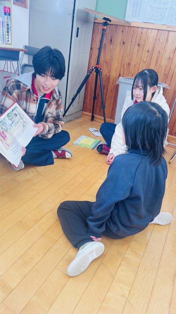 先週は特別なコラボレーションのために県ヶ丘高校を訪問しました。今回の訪問をさらにワクワクするものにするために、みんなでひとつのルールを決めました。それは「Speak English only」です。