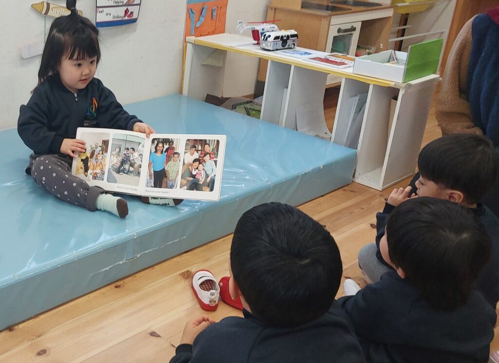 子どもたちが大好きなショー・アンド・テルの時間です!バスカードにステッカーをいくつか追加できた子もいます。Waterfallの子どもたちは、すてきな乗りもののおもちゃや写真、アルバムを持ってきて、みんなで楽しく見ました。