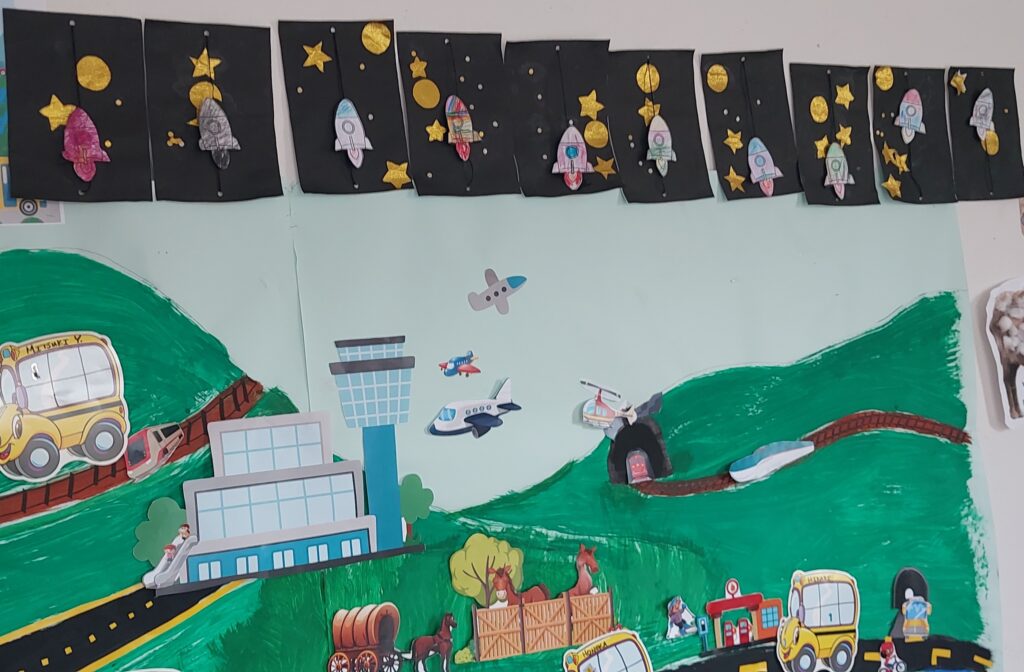 今、私たちはさまざまな「乗りもの」と、人や場所をつなぐ方法について学んでいます。「乗りもの」は、人に会いに行ったり、必要なものを手に入れたり、新しい場所を見つけたりするために使われます。陸・水の中・空――では、ロケットはどこを飛ぶのでしょう?