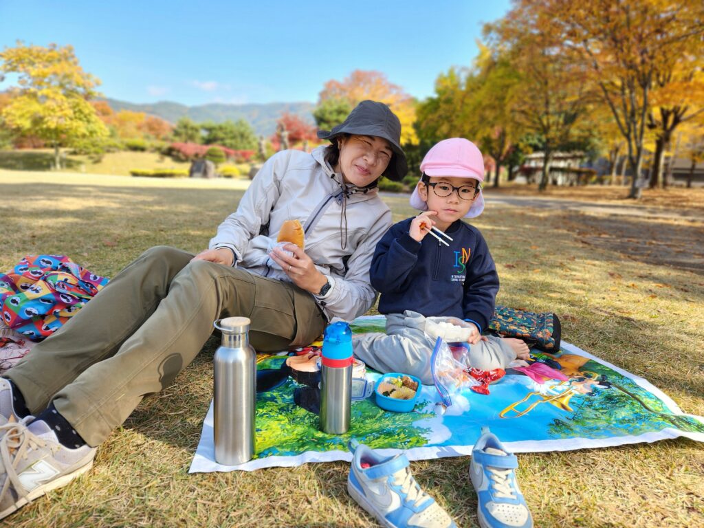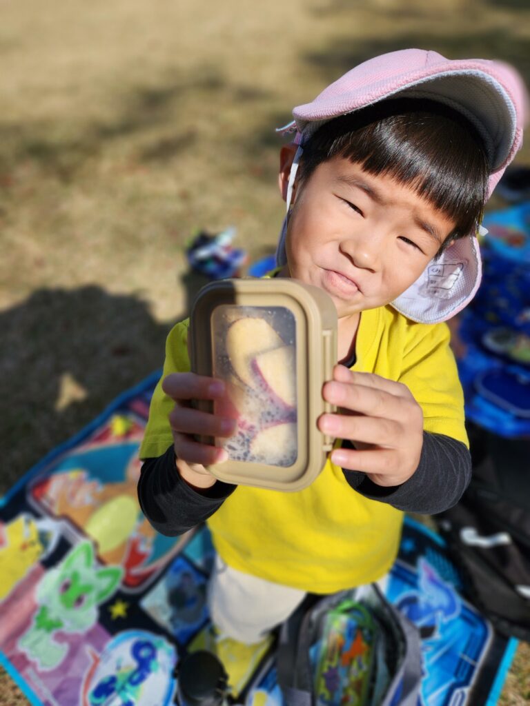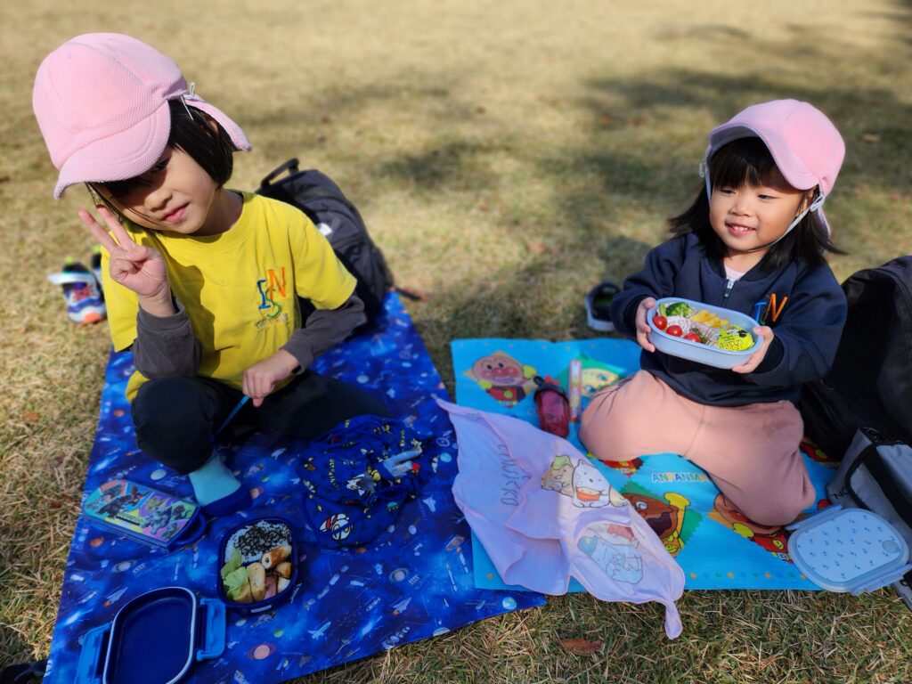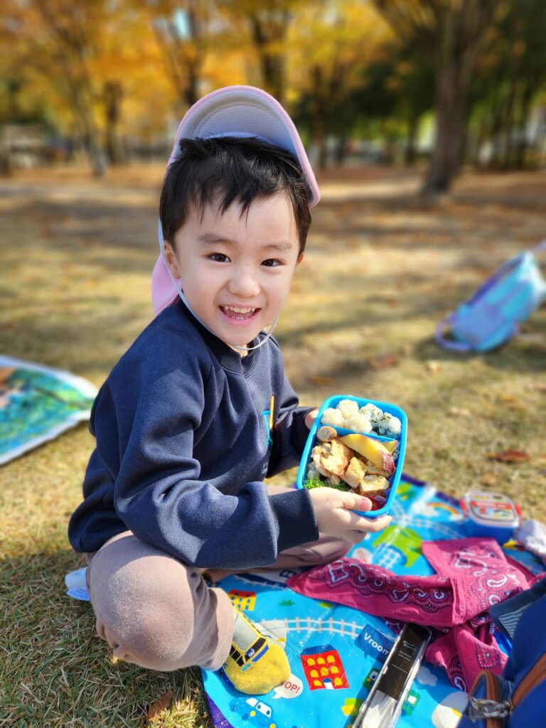 待ちに待ったお弁当タイムの後は、芝生を走って落ち葉の上に寝転んで、たくさん笑って楽しい時間を過ごしてきました!大好物がいっぱい詰まった美味しいお弁当やその他の用意、どうもありがとうございました!