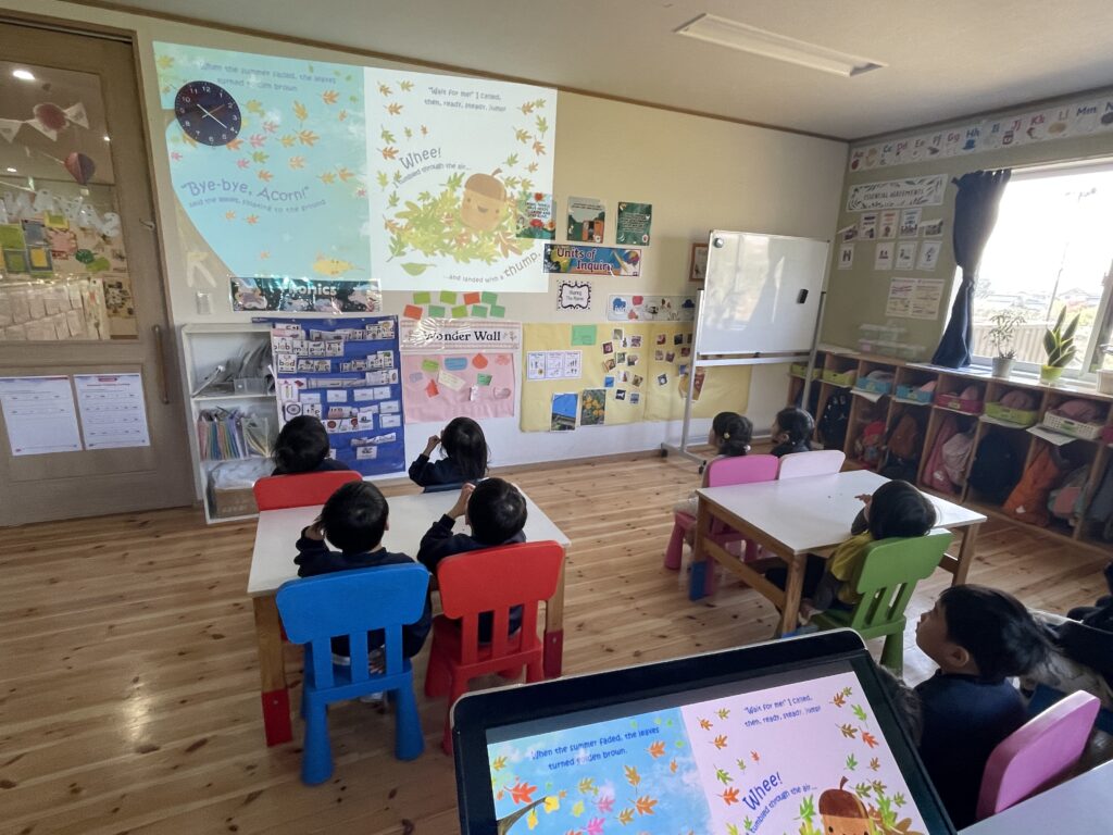 そこで、みんなで 『どんぐりのぼうけん』(Little Acorn) という絵本を読みました。