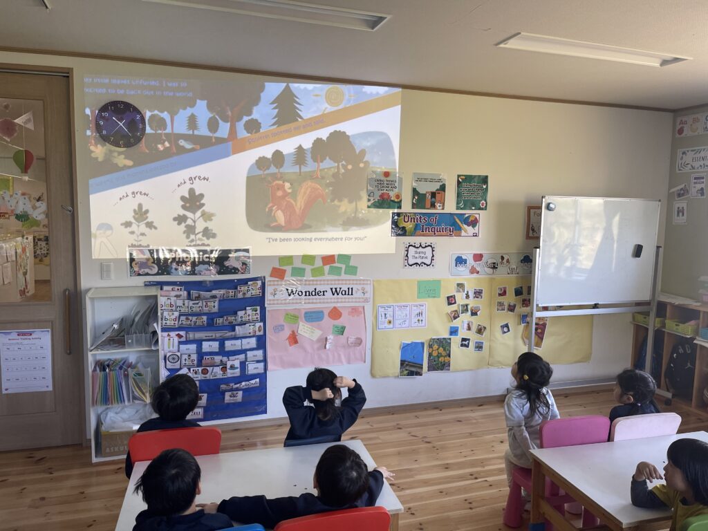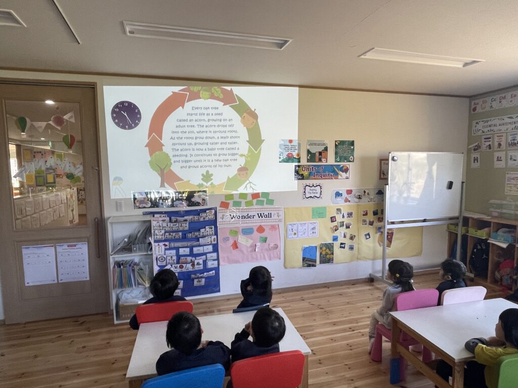 最後には全員が「どんぐりは living things!」と納得し、クラスに貼ってある写真カードを“non-living”のグループから“living”へ移動しました🌰🌳
