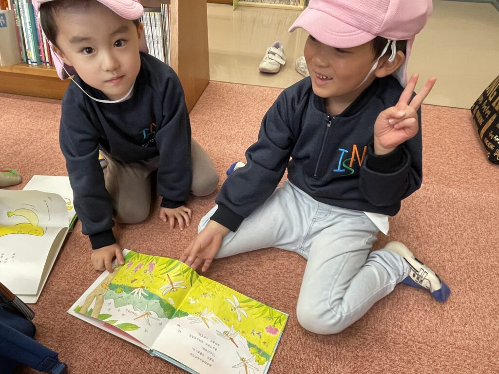 One of the highlights was our Library Visit, where the students enjoyed exploring books to discover more examples of living and non-living things. The fun continued outdoors as we observed real-life living things such as birds and Japanese koi. We were guided by a professional nature expert, Mr. Kamijo, who taught us many fascinating facts about birds. 今回のハイライトの一つは図書館の利用です!📚私たちが住む歴史ある建物を知ると共に、これから行くあがたの森にはどんな生き物がいるのかを、推測しながら絵本を見てきました。実際にお友達と絵本を見ながら、「恐竜はいないよねえ!」「くじらは…いない、よね?」と楽しそうに絵本をめくっていました☺