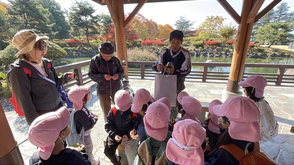The class headed to one of the city’s most scenic parks, Agata no Mori. There, we admired the beautiful autumn colors of the trees and walked around to appreciate the charm of the historic buildings that have been carefully preserved through the years. 行き先は松本市内でも人気のある あがたの森公園。