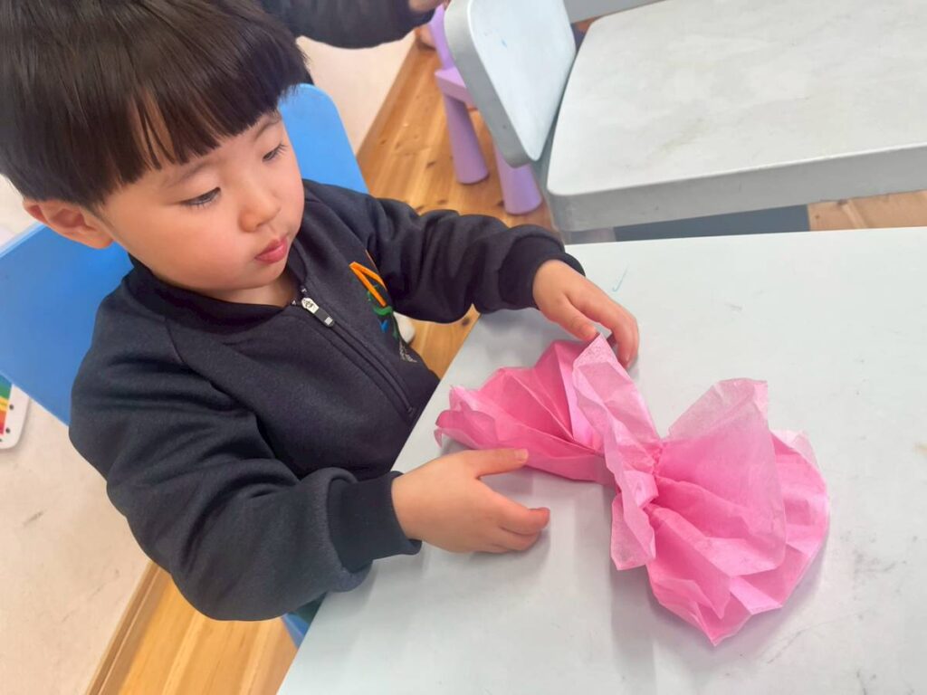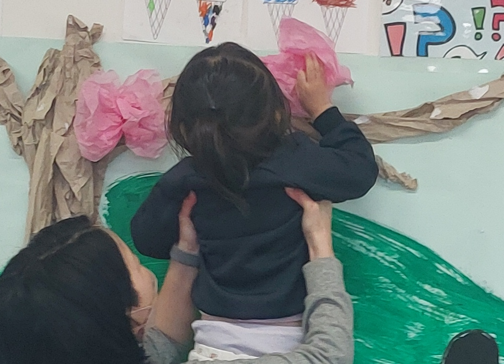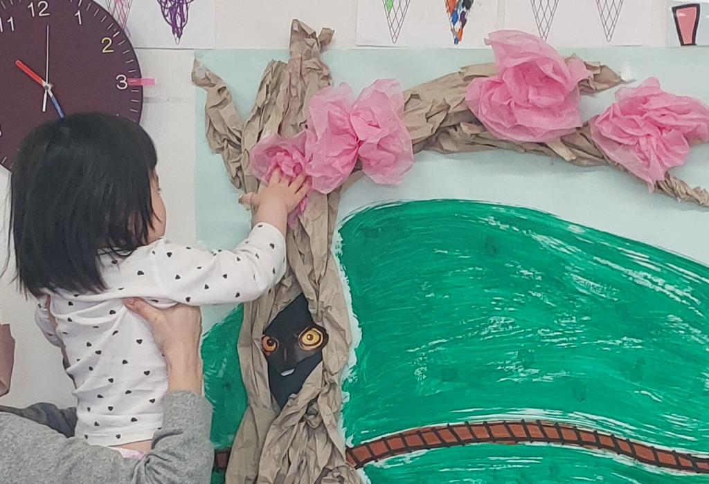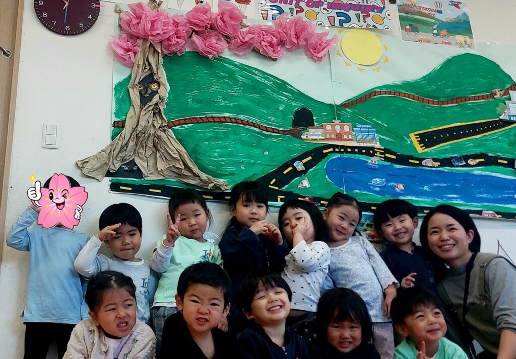 まだ時々雪がちらつく日もありますが、春はもうすぐそこまで来ています。外を見てみると、木々はまだ葉がありませんが、もう少し暖かくなれば、少しずつかわいらしい花が咲き始めるでしょう。そこでWaterfallクラスの子どもたちは、IBウォールの木に美しい桜の花を作って飾り、季節のサイクルを完成させました!