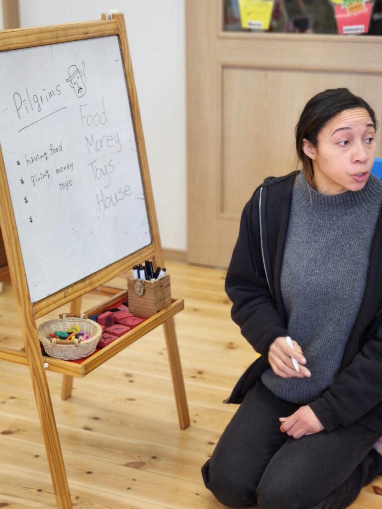 また、サンクスギビング(感謝祭)についても学びました。これは多くのアメリカ人にとって、クリスマスと同じくらい大切にされているお祝いです。