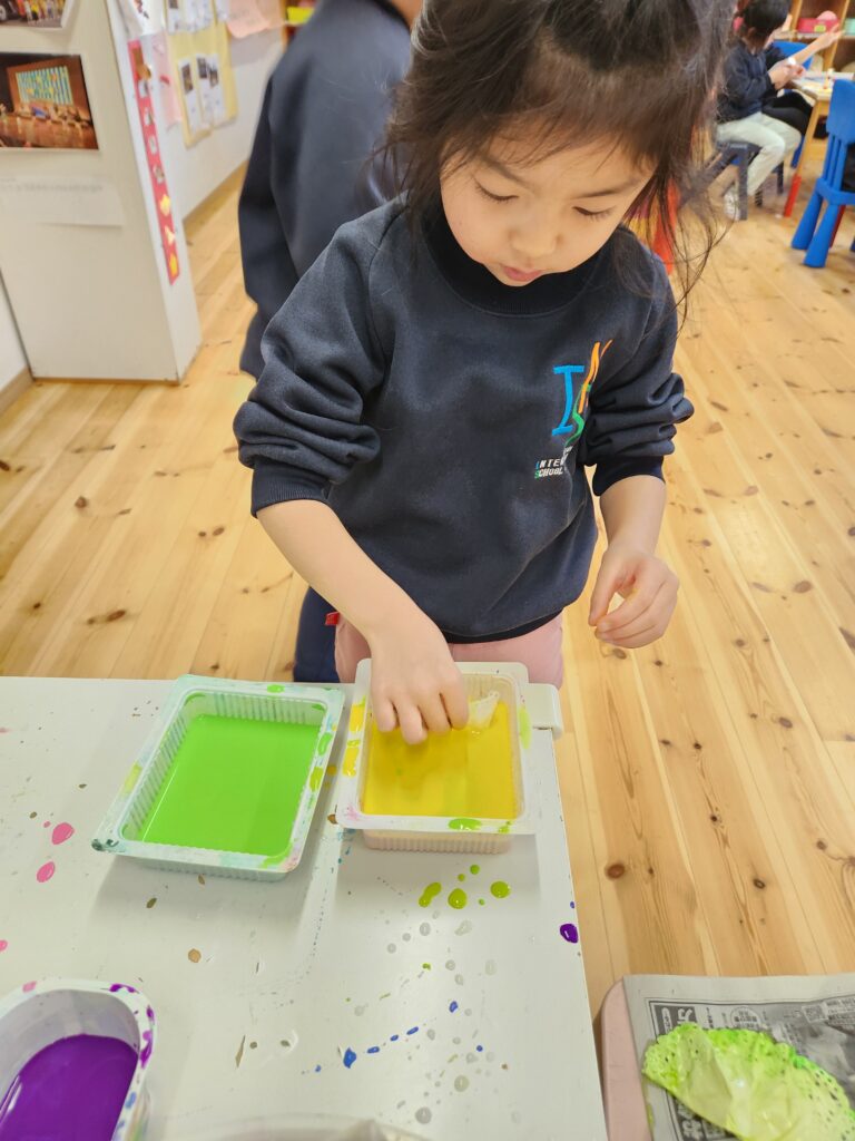 世界のお祝いについての絵本の中で子どもたちの目をひいたのは、イースターのイベント!色とりどりの卵、飾りつけ、そして笑顔の家族たち。その日はレッスンプランには入っていませんでしたが、子どもたちの興味に寄り添い、イースターについて探究を進めることにしました。