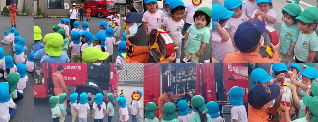 水曜日は盛りだくさんの一日でした!まずは地震訓練。頭を守ってテーブルの下に入ることを思い出しました。そして地震による火災が起きたことを想定して、口をおさえながら外に避難しました。園庭には真っ赤な消防車と消防士さんが待っていて、緊急時の行動の振り返りや、それらがどうして大切なのかをお聞きしました。ISNの先生たち全員で消火器の使い方を練習し、子どもたちは消防車の中にある安全のための道具を見せてもらいました。消火ホースは一本で3〜4kgあるそうなのですが、「重たい〜!持てない〜!!」と持てるかどうかチャレンジしました。かっこいい消防車の前で消防士さんと一緒に写真がとれて、みんなとても嬉しそうでした!