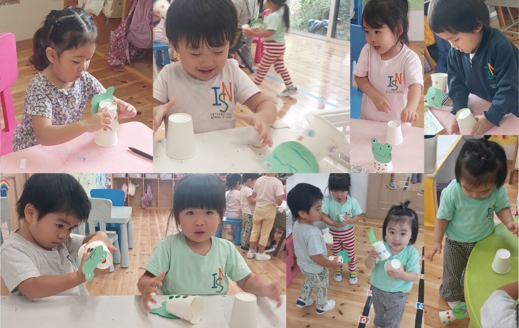 今週のWaterfallクラスは、ぴょん!と飛び跳ねるカエルのおもちゃ作りでスタートしました!