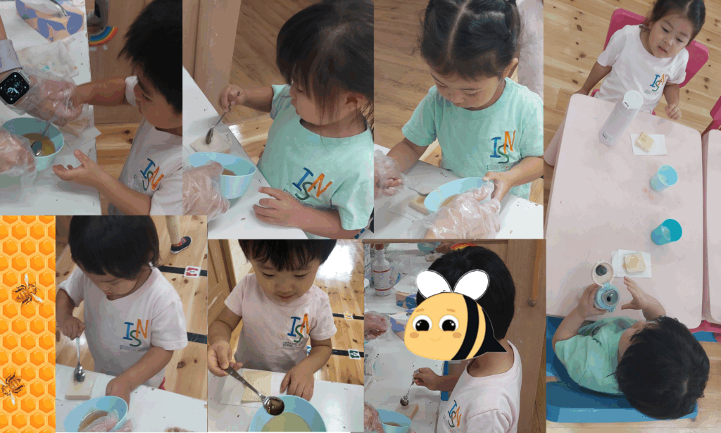 ハチミツをパンに塗っておやつとして食べましたが、甘くておいしくて、全員おかわりをしました!