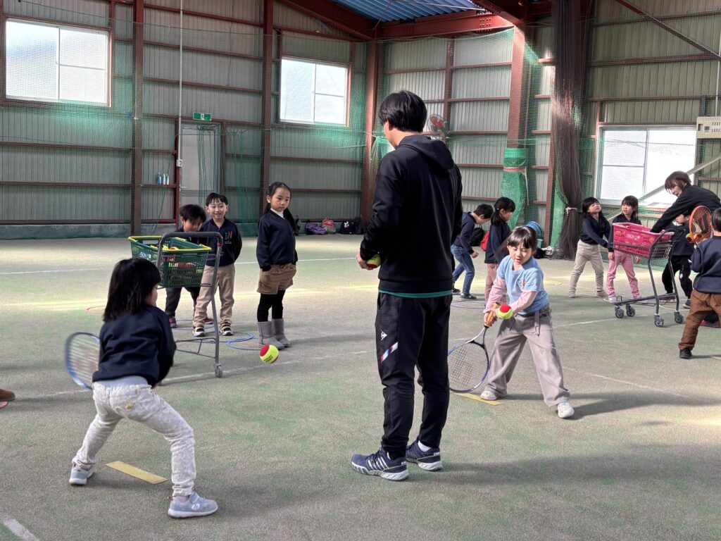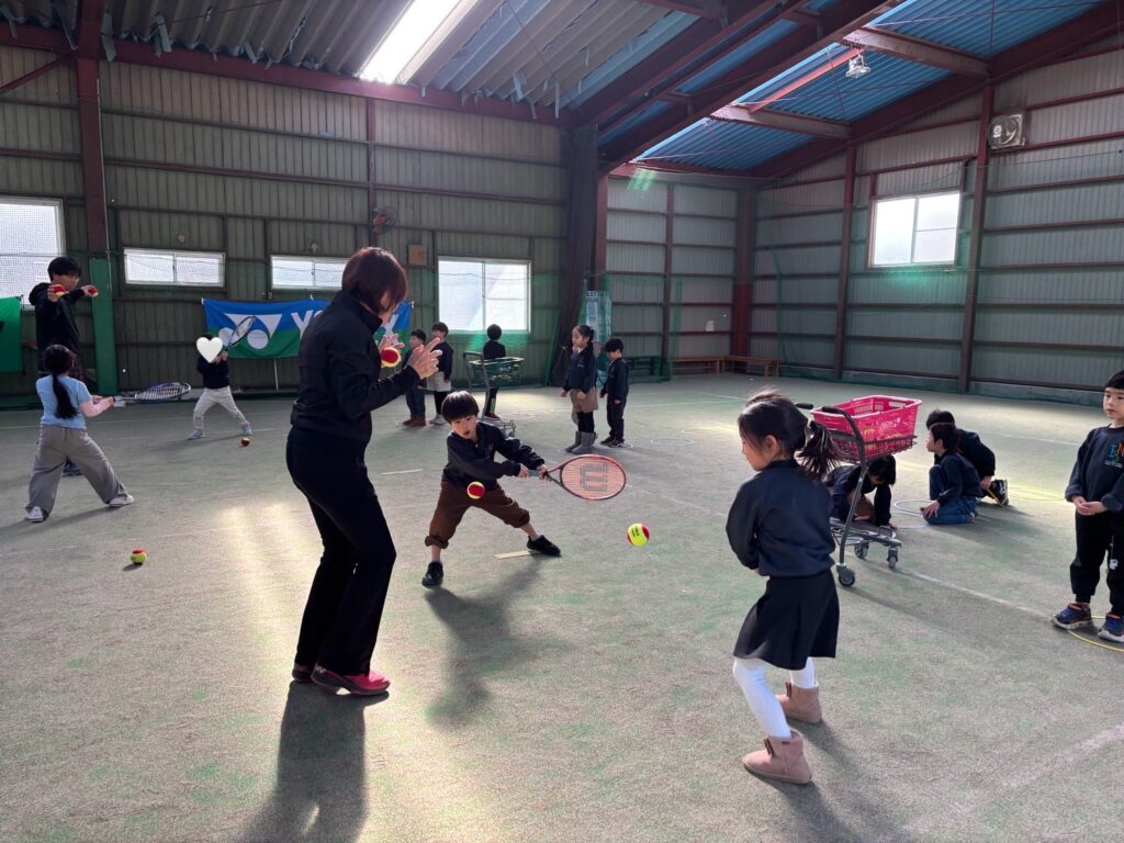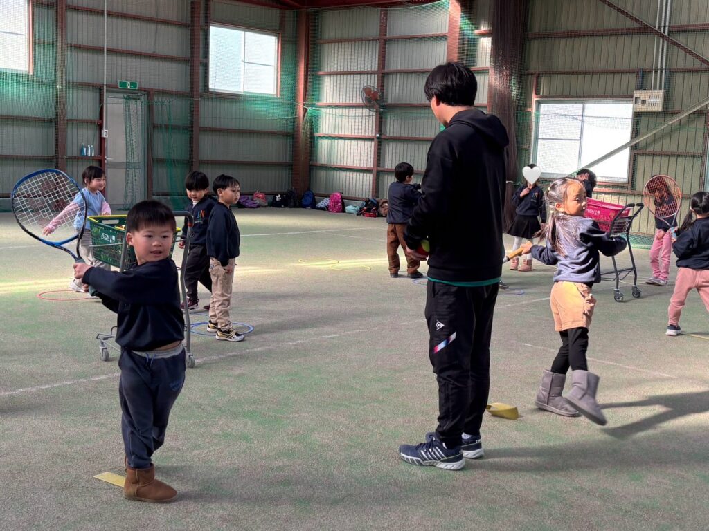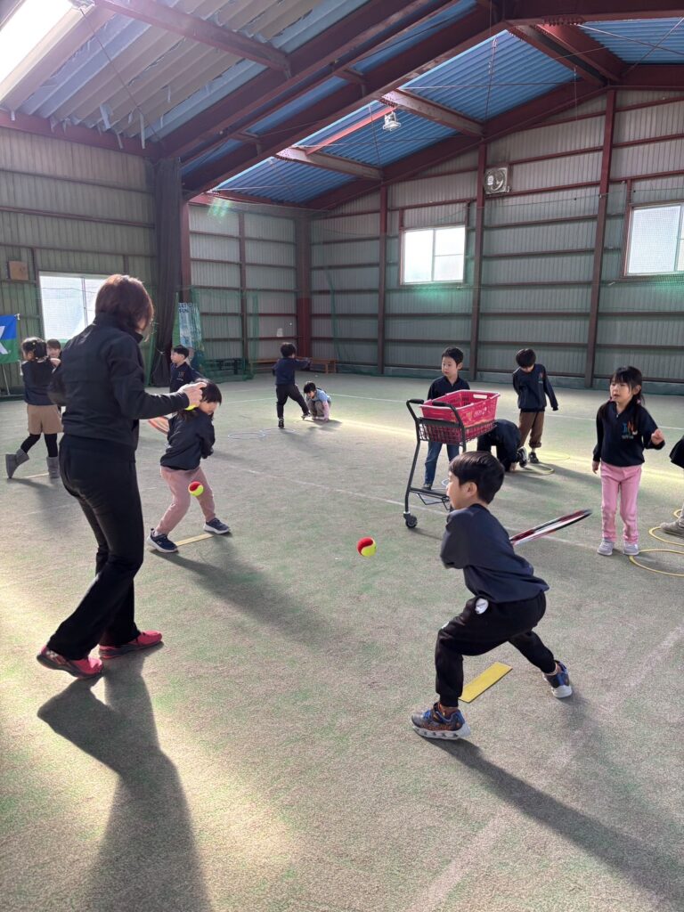 テニスレッスンでは、ワンバウンドしたボールをタイミングよく打つ練習をしています。体を向ける位置、ラケットの握り方など、この一年学んできたことが体にしみつき、みんな上手に球が打てるようになってきました!ネットを越えてきれいに球が打てると、「やったー!」と大喜びのRainforestさん達。