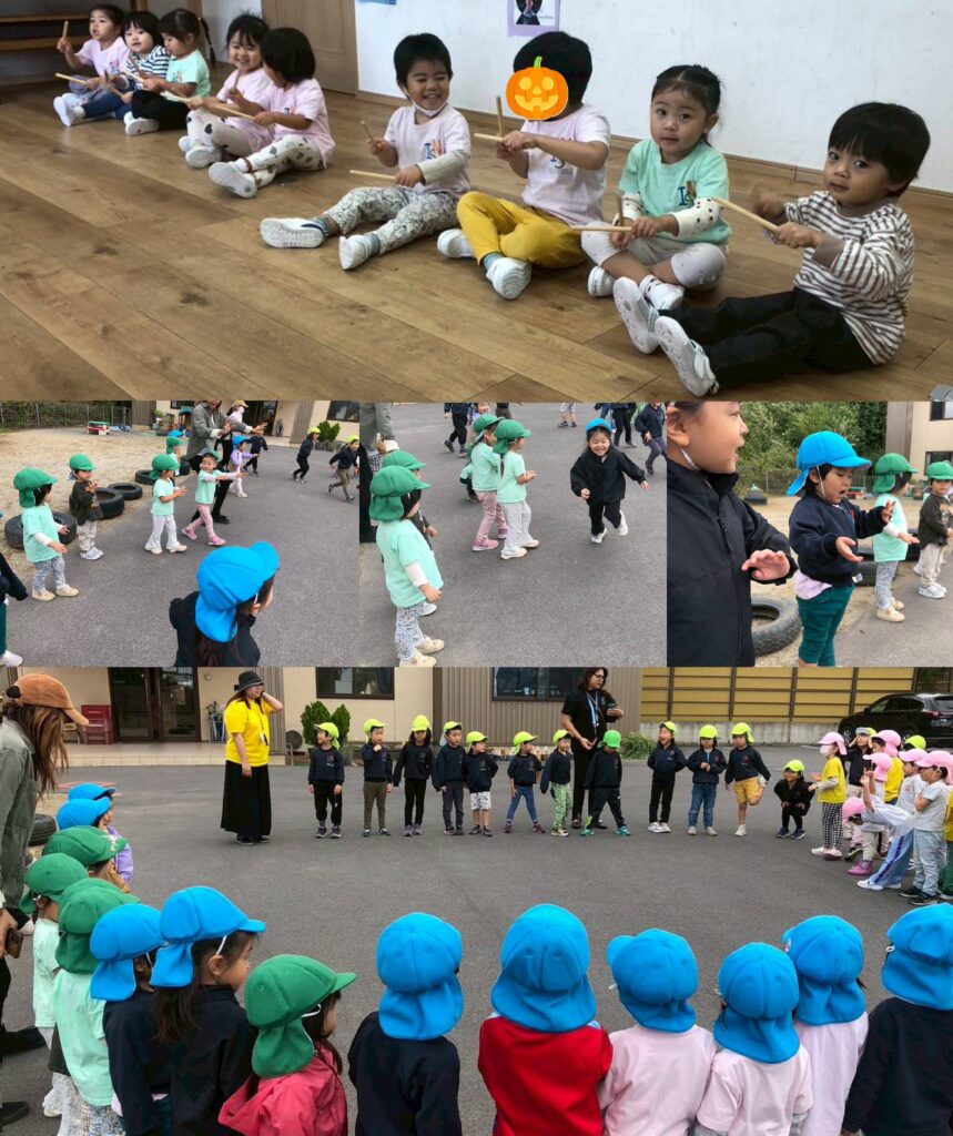 その日を迎えるまでの間も、ミュージッククラスではリズム練習にチャレンジしたり、島内キャンパスのお友だちと一緒にハロウィンダンスを楽しんだりと、毎日元気いっぱいです。
