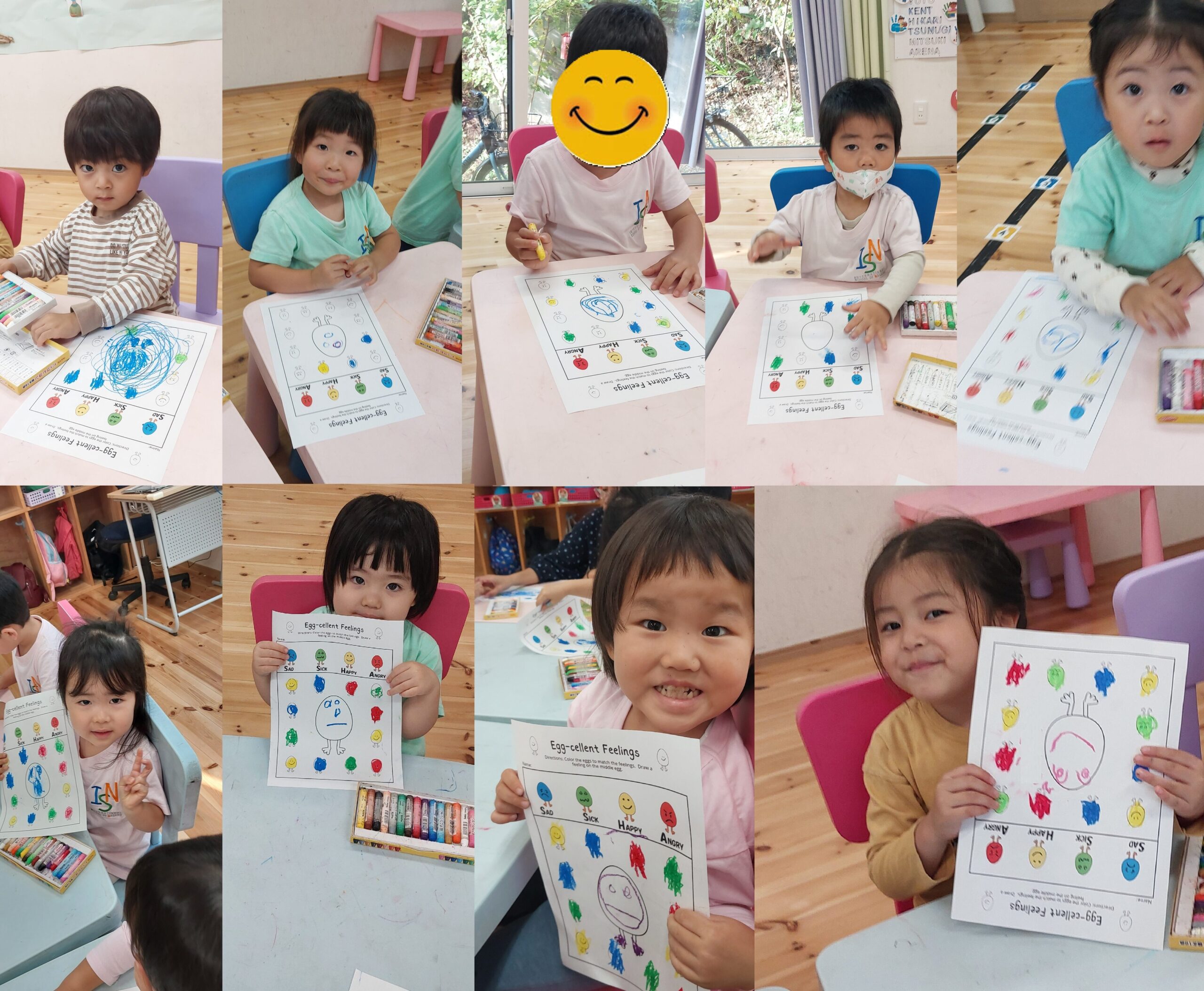 Waterfallクラスでは、ユニット3「How We Express Ourselves(わたしたちはどのように自分を表現するか)」のユニットに取り組んでいます。そして探究テーマ1(LOI1)では、「気持ちはいろいろな方法で表現したり、コントロールしたりできる」ということを学んでいます。毎朝のスタートには「Kids Greetings and Feelings Song」を歌いながら、「今日はどんな気分? Good? Great? それとも Wonderful?」と、自分の気持ちを声に出して伝えています。みんなニコニコ笑顔で元気いっぱいに歌っています^^